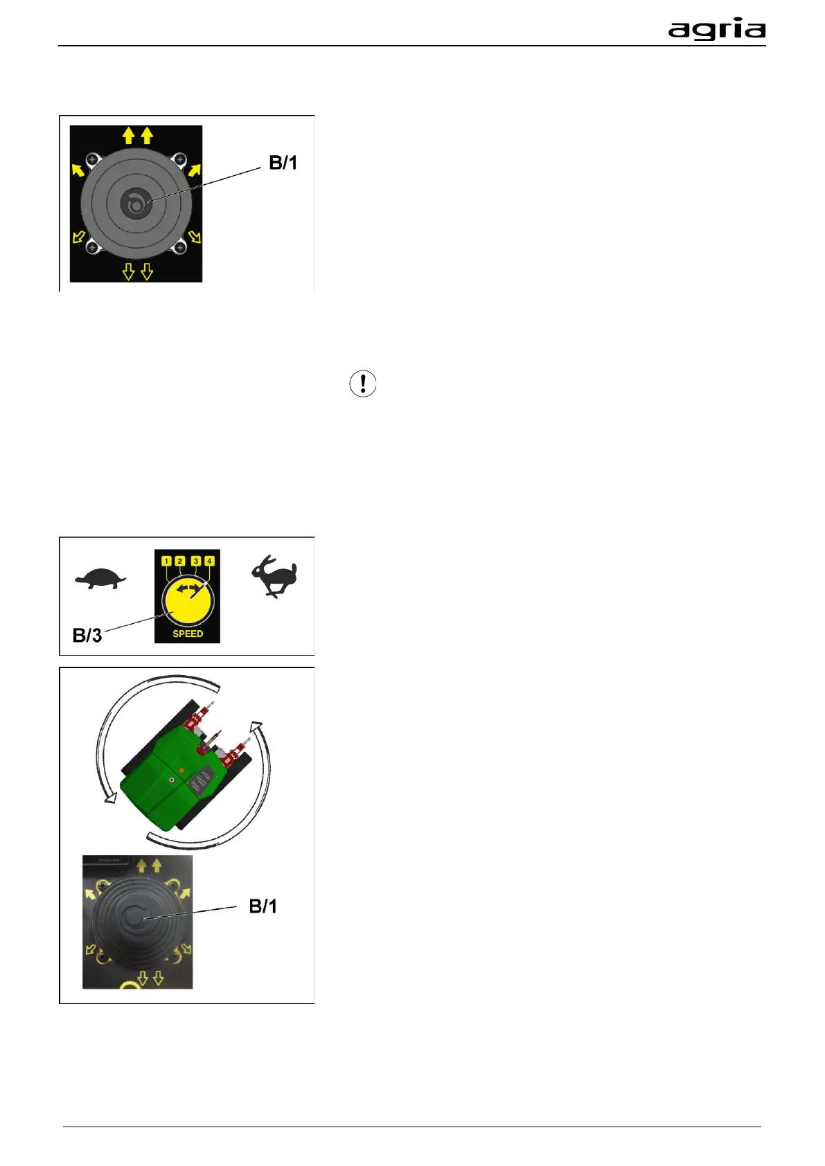 Use the joystick (B/1) to adjust the travel speed of the machine