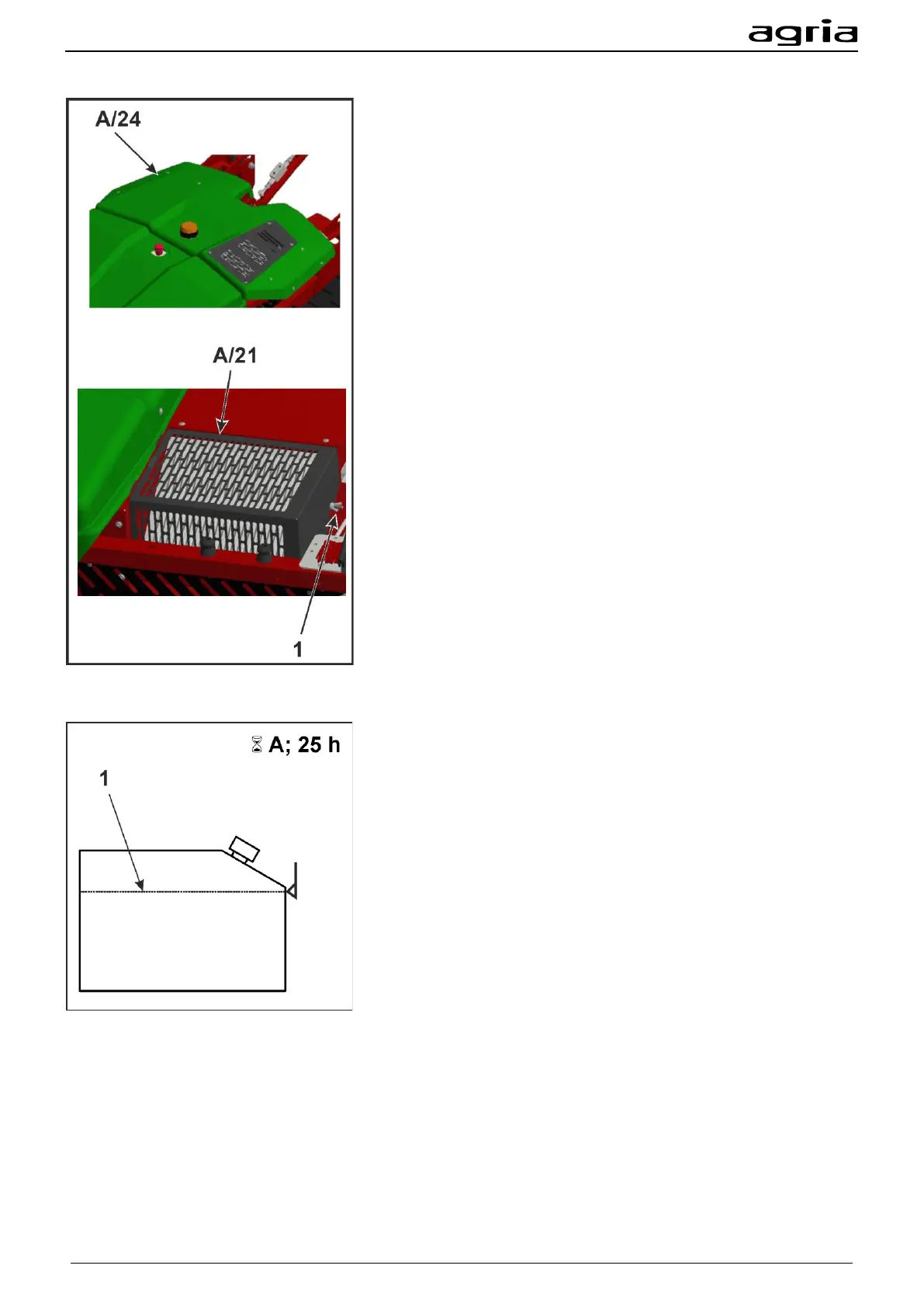 Check the oil level every 25 operating hours.