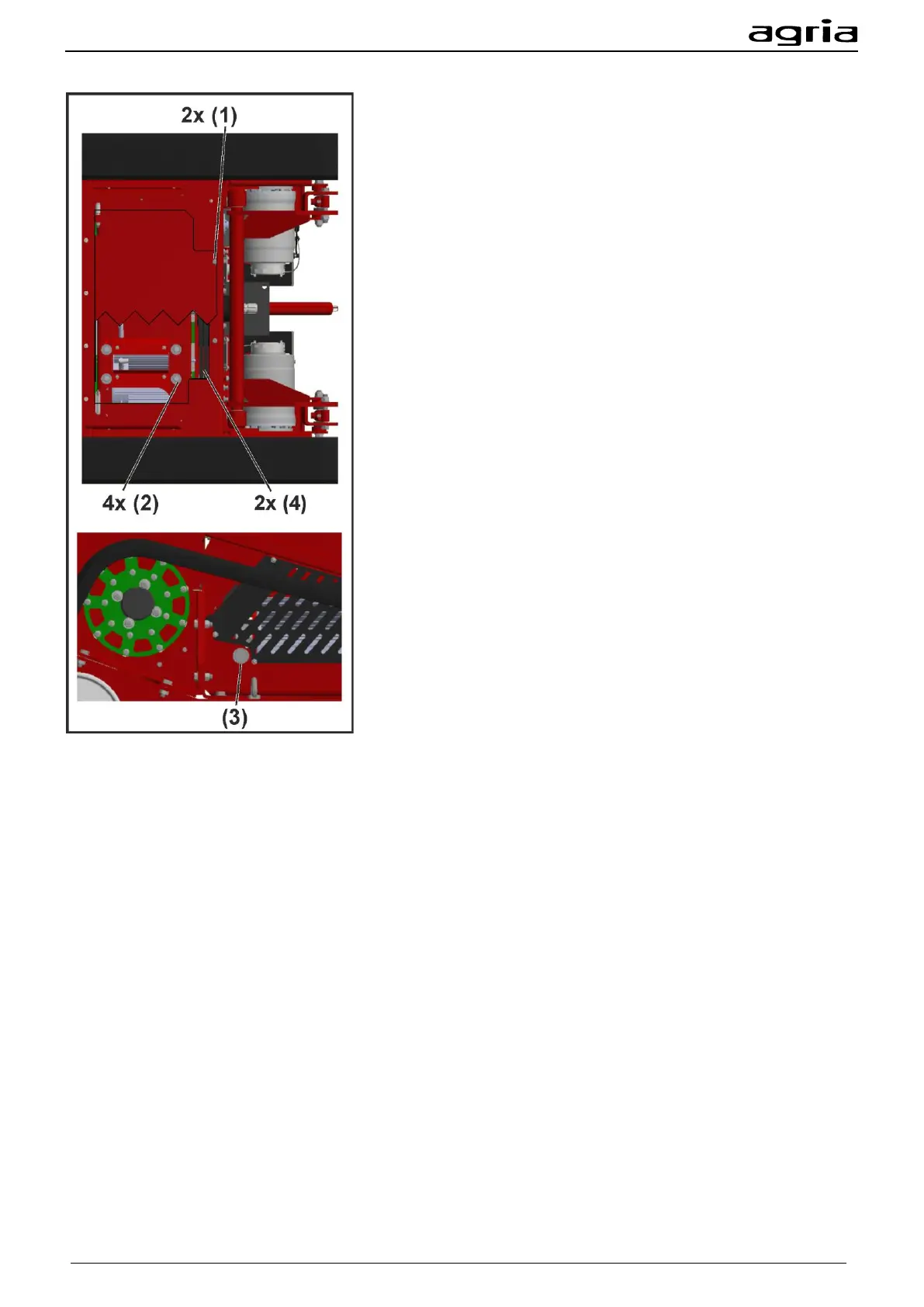 3. Slacken the V-belts with the adjusting screw (3) on the left-