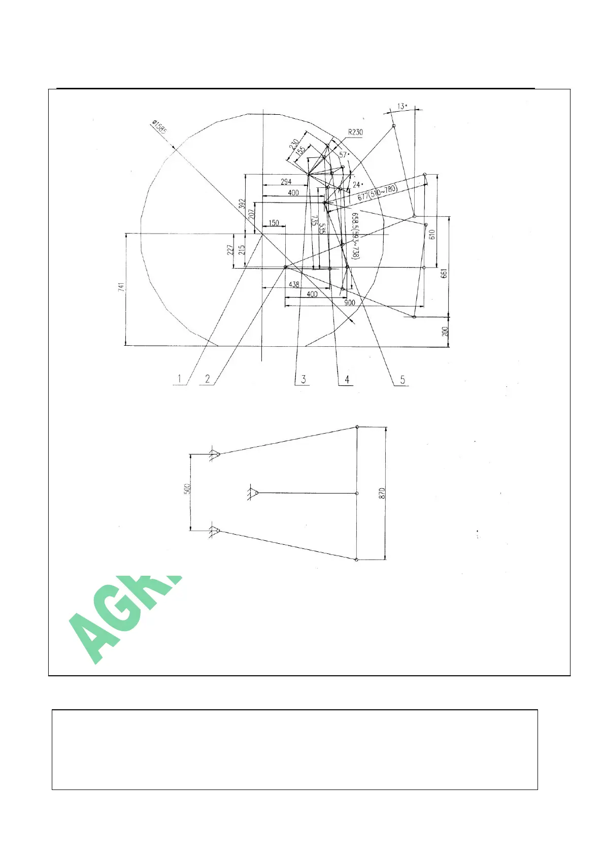 1. center of the driving gear; 2.lower link point; 3.connecting point of the lifting shaft;