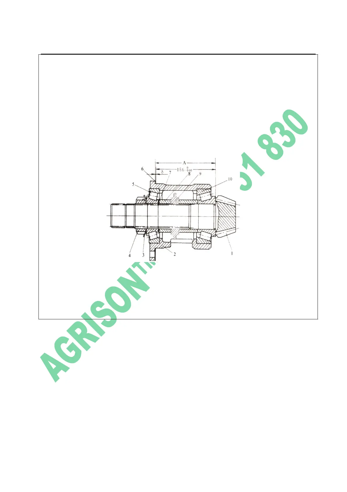 l. Small bevel gear shaft; 2. bearing housings; 3. retaining washers; 4 round nut; 5. tapered roller bearings;