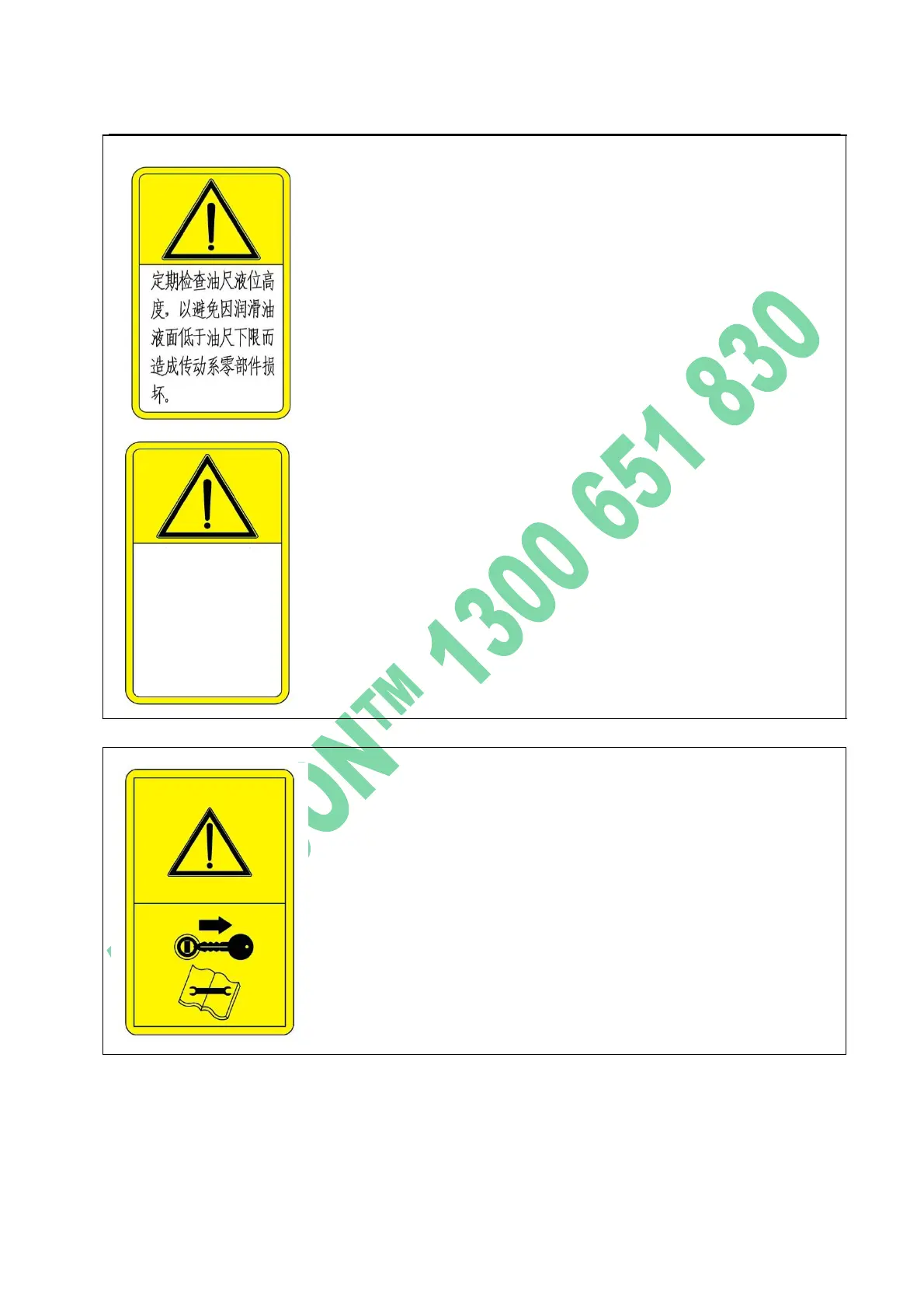 含义:维修、保养、 调整前,应关停发动机,并抽出启动钥匙,按照使