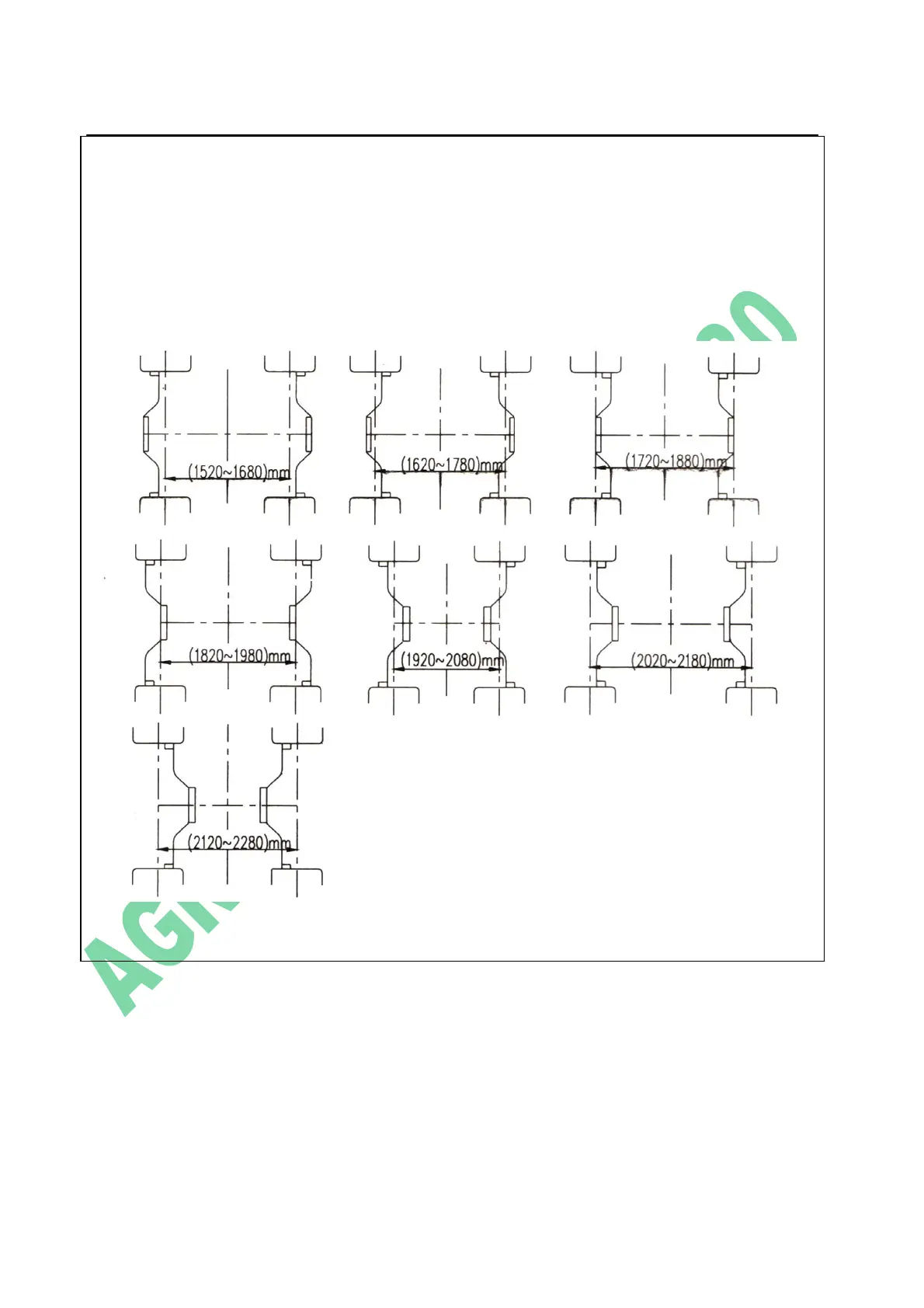The normal wheel track is 1620mm, 7 kinds of wheel track as shown in Figure 2-36 are available by