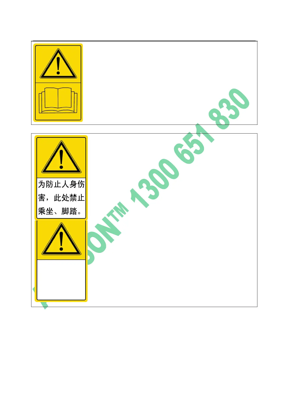 含义:请阅读使用说明书,了解无文字安全标识的含义,以免造成人身伤害。