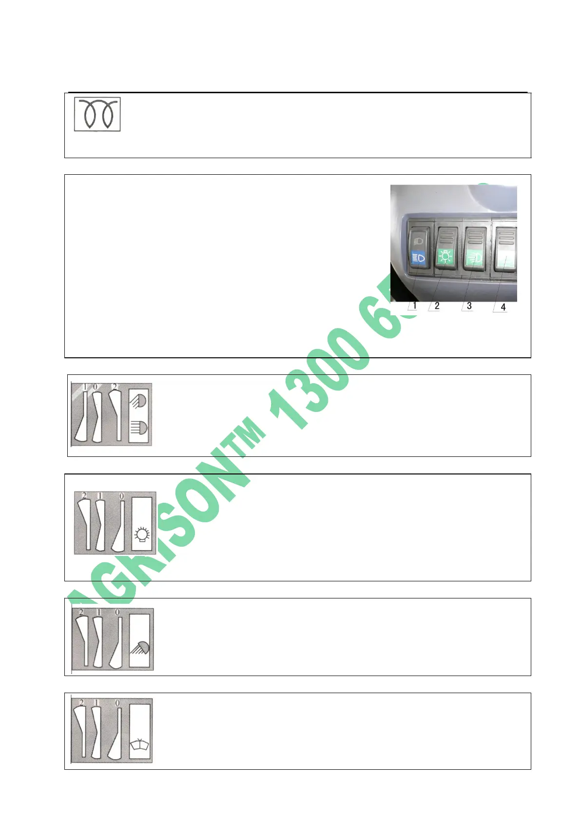 Headlight on full beam is lit Dipped headlight lit. Position “1". stand by service.