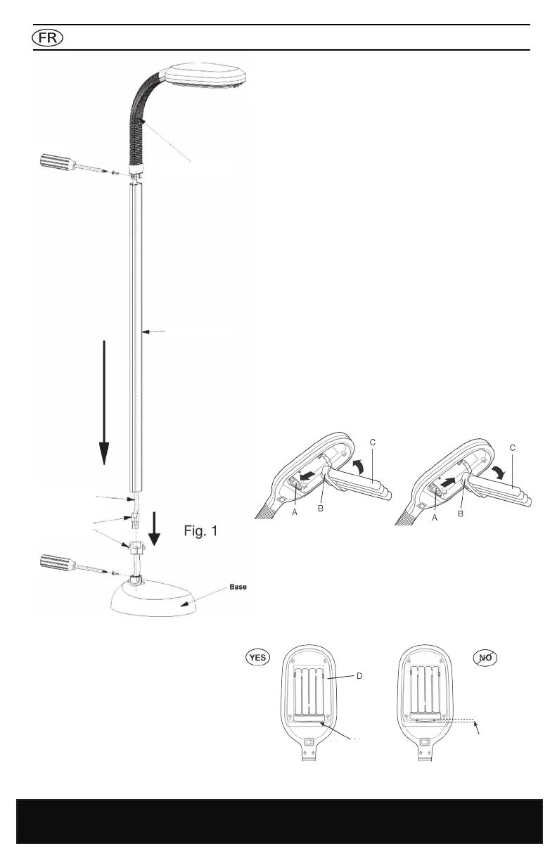2. Fixer fermement la base (B) et introduire l’ampoule