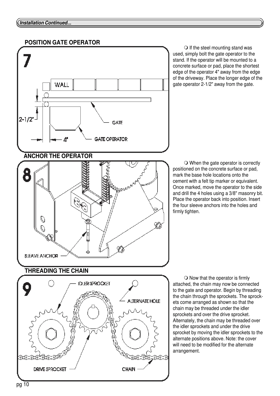 to the gate and operator. Begin by threading