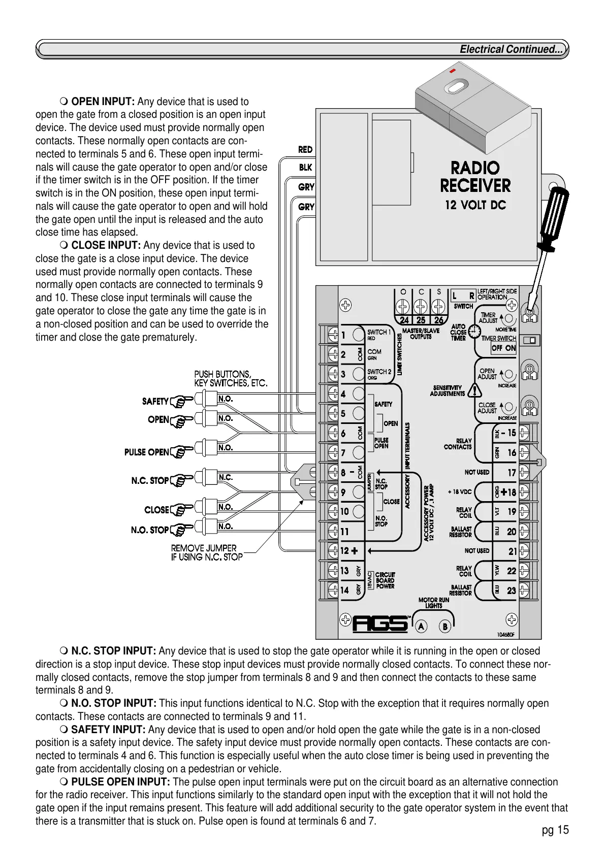 m N.C. STOP INPUT: Any device that is used to stop the gate operator while it is running in the open or closed