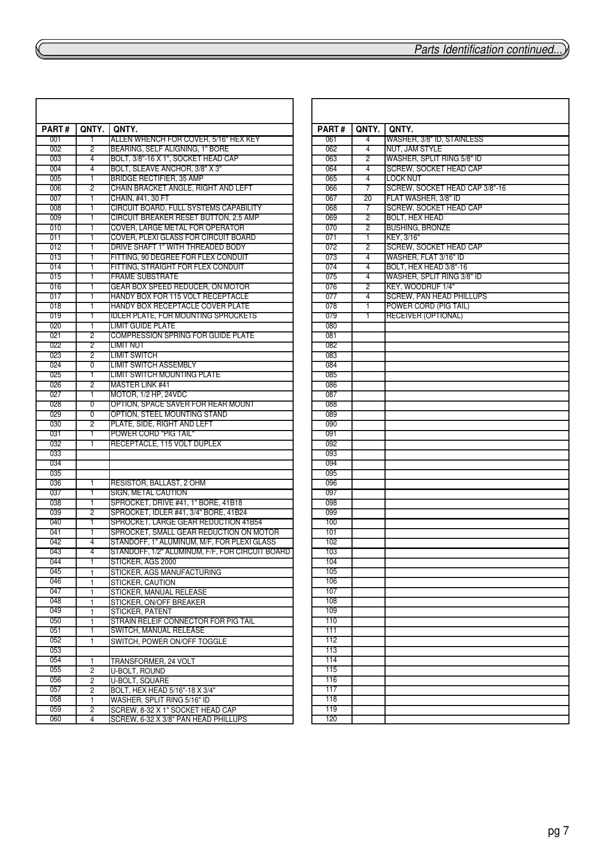 PART # QNTY. QNTY.