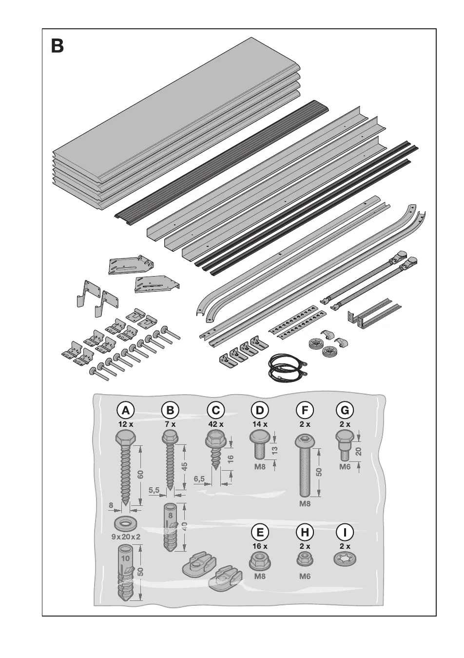 AGS D-PL - B Mitgelieferte Artikel Garagentor; B Załączone Materiały - Brama Garażowa; B Garage Door Article Supplied