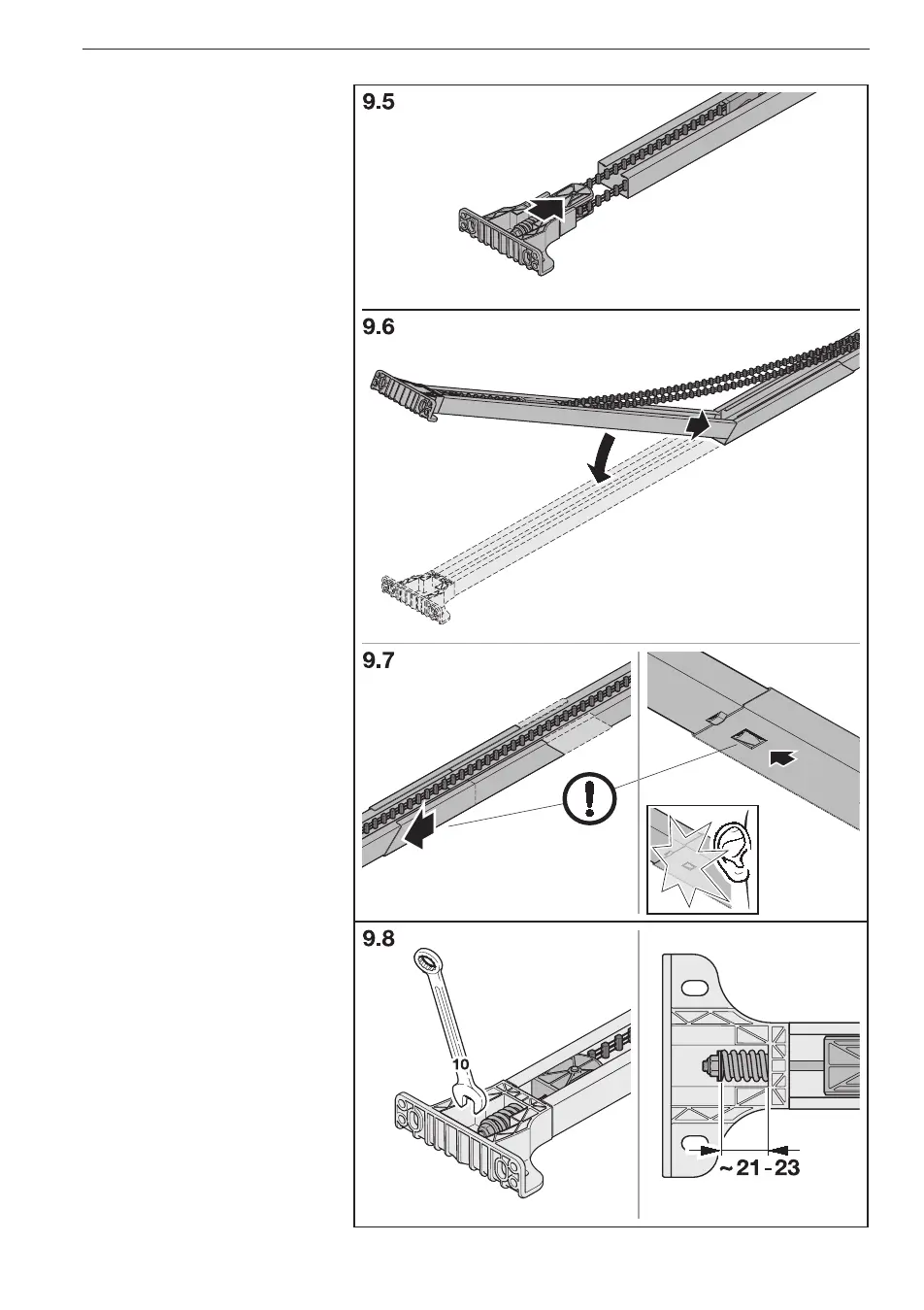 Insérez un second élément de rail, 9.
