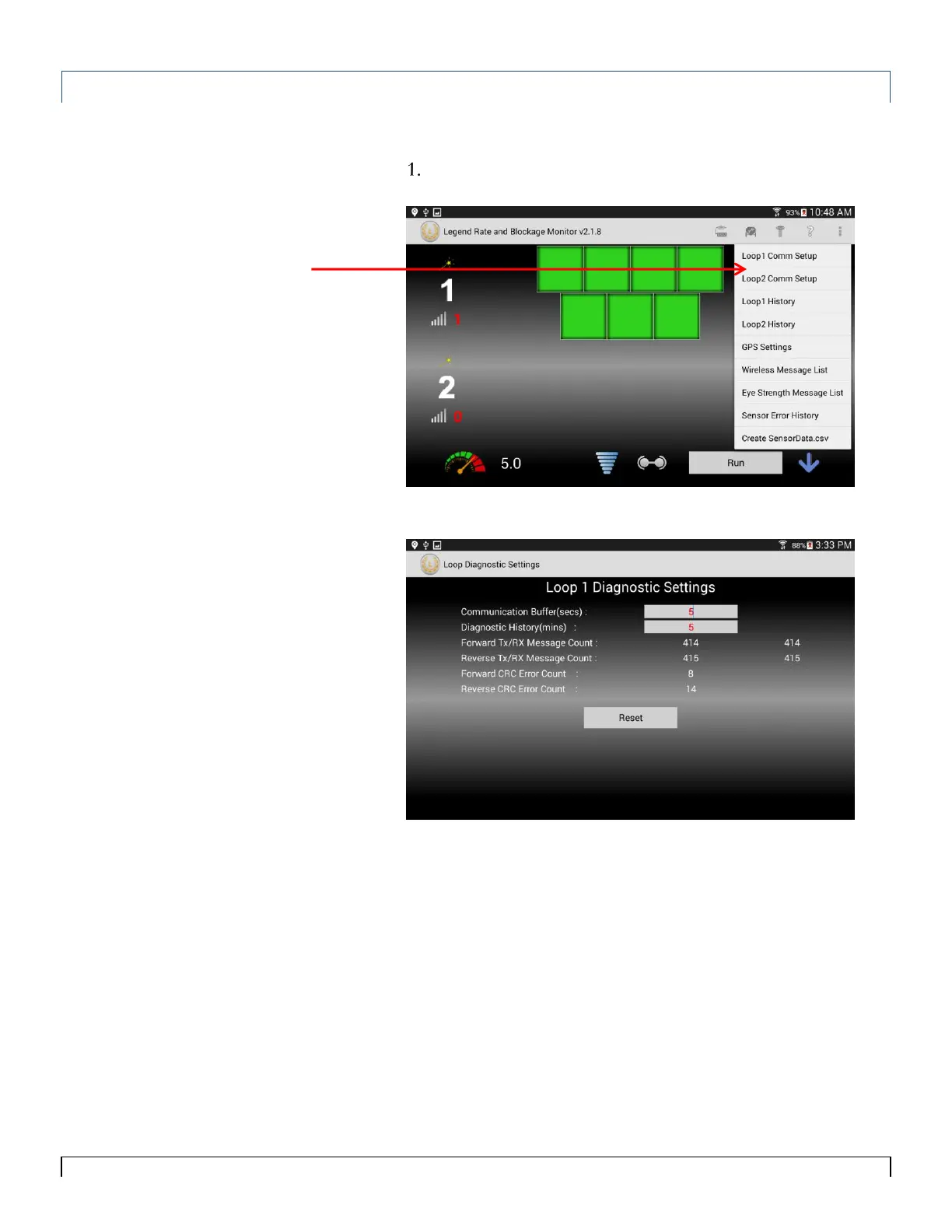 To view the Loop Diagnostic Settings Screen, tap the Loop