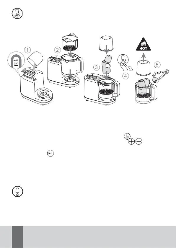 Put the bottle in the steaming basket, and then cover it with the measur-