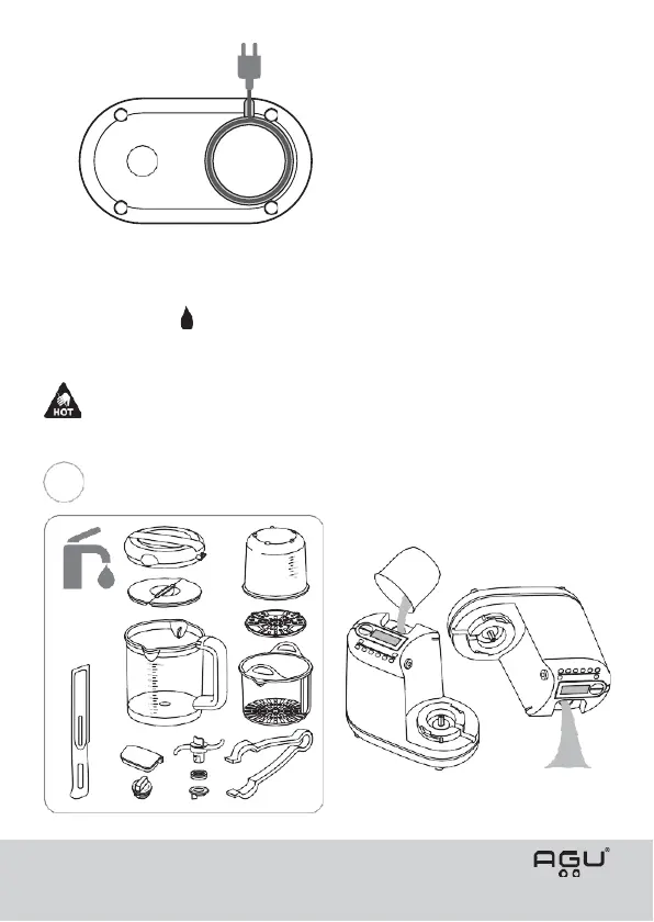 Be careful when opening the lid of the water container – you can burn
