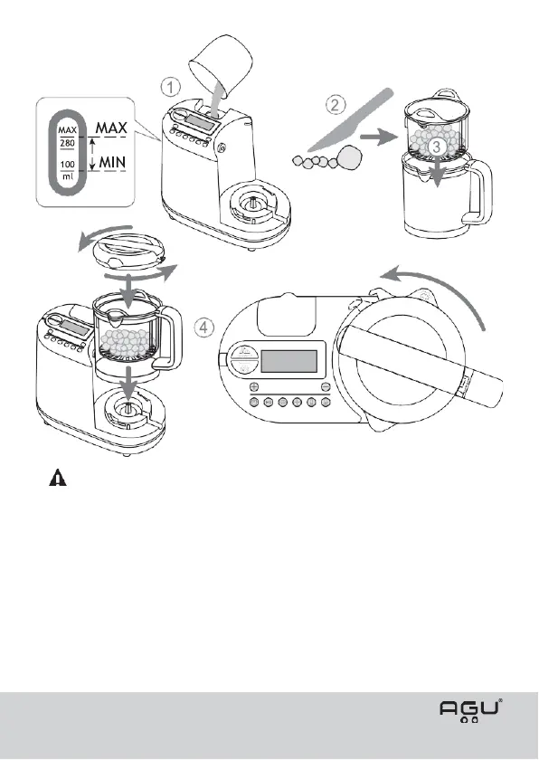 1 Заполните контейнер водой не менее отметки «100 мл» и не превышая