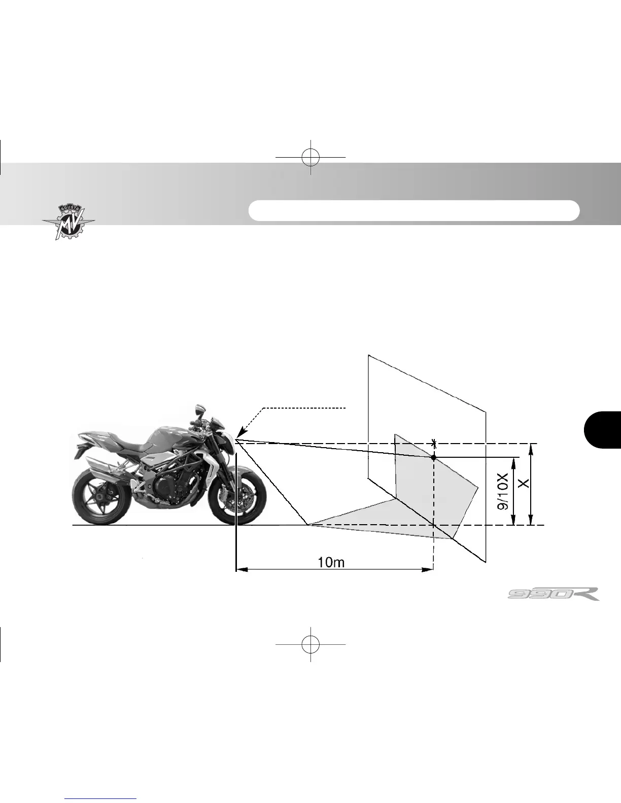 Place the vehicle at a distance of 10 m from a vertical wall. Make sure that the motorcycle is placed on