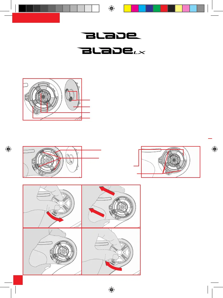 cavités de la base du mécanisme. L'embout de la visière est aussi doté de crans qui agissent sur les crans de la base du méca-