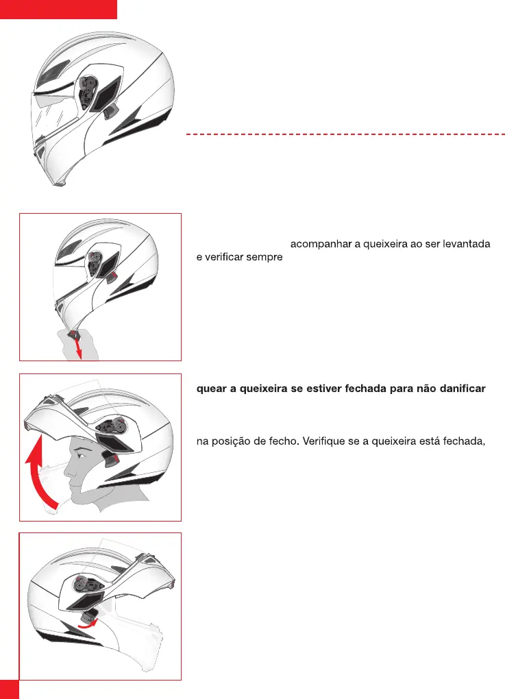 tra no lado direito do capacete (com o capacete na cabeça)