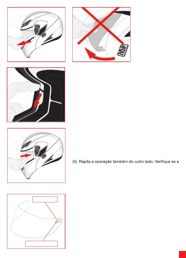 permite fechar a viseira. O sistema baseia-se em dois pinos