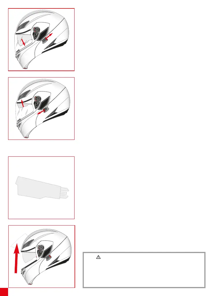 拆卸遮阳板,需要将其完全放下,将护目镜向上抬起直至其完