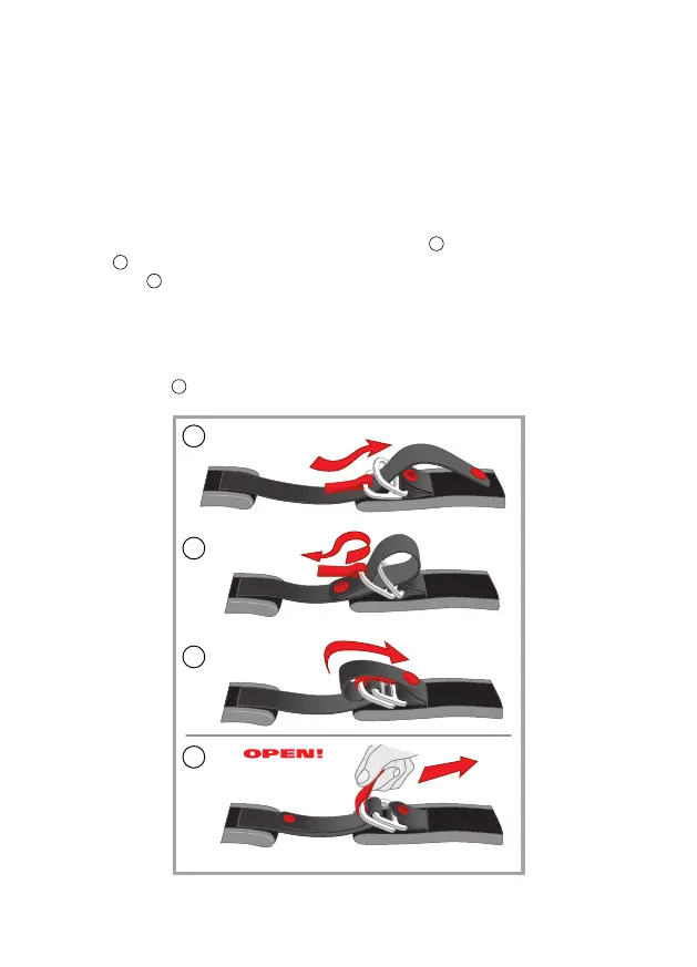 aflojar la correa deslizándola por los anillos, con la ayuda de la lengüeta roja, como indicado