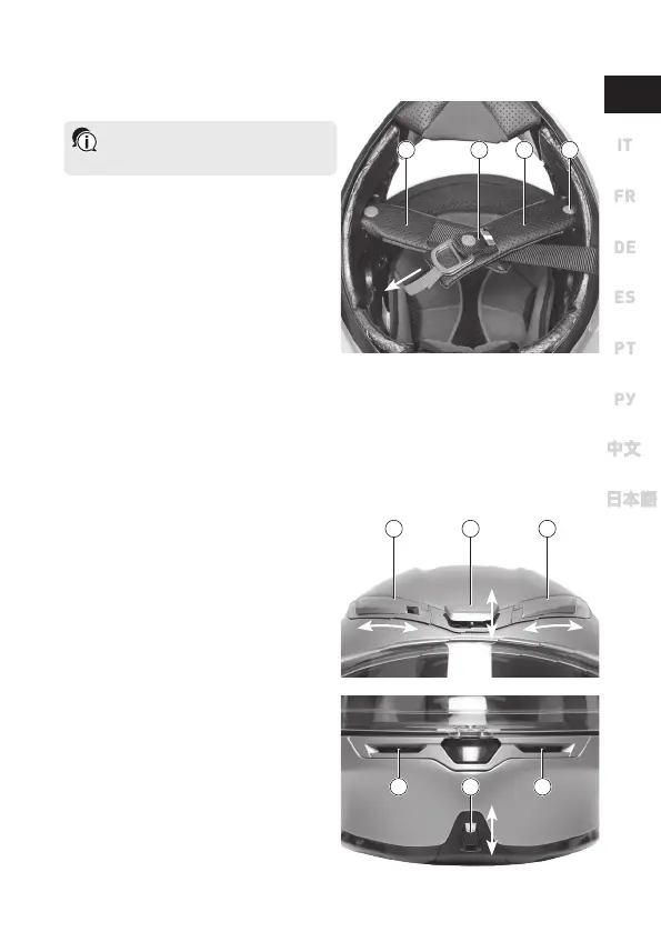 • Put the retention system lace (3) into the chin strap cover (2).