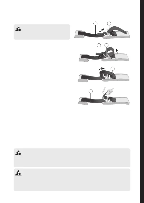 • Insert again the chin strap through