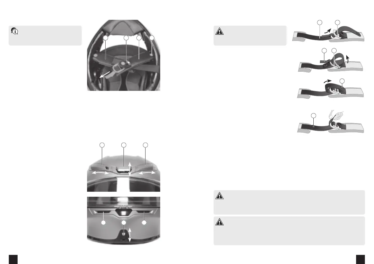 • Insérez la sangle de retenue (3) dans le revêtement de la jugulaire (2).