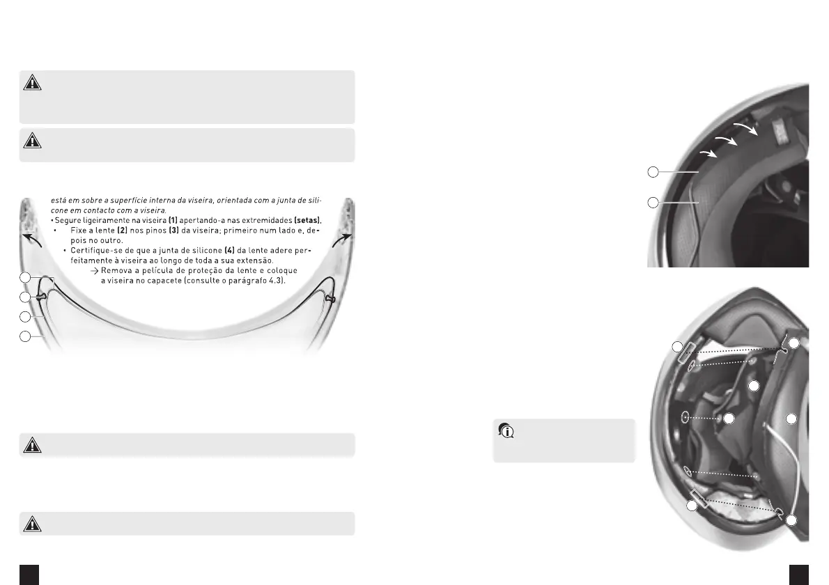 • Fixe a lente (2) nos pinos (3) da viseira; primeiro num lado e, de-