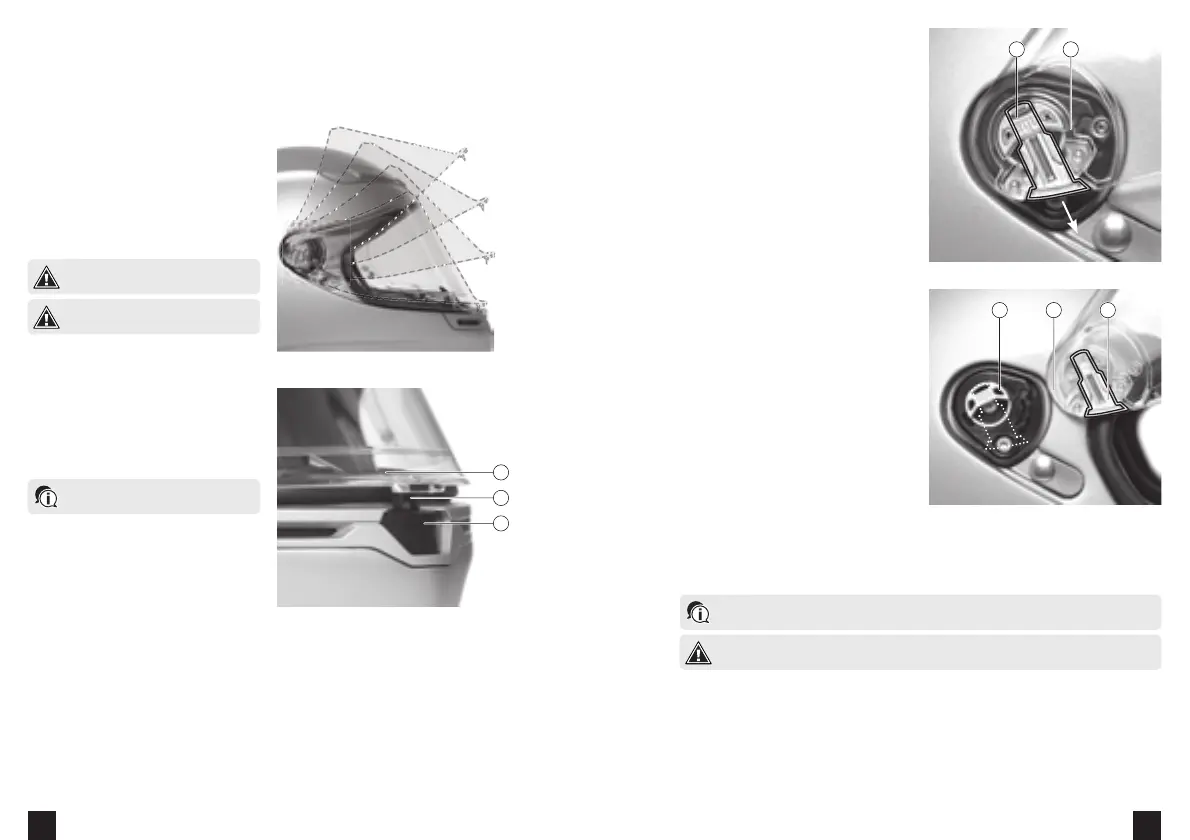• 往下拉面镜(1)直到塑料钩(2)与开启