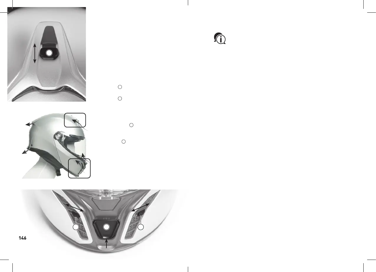 将 拨 扣 向 盔 顶 外 部 移 动, 打 开 侧