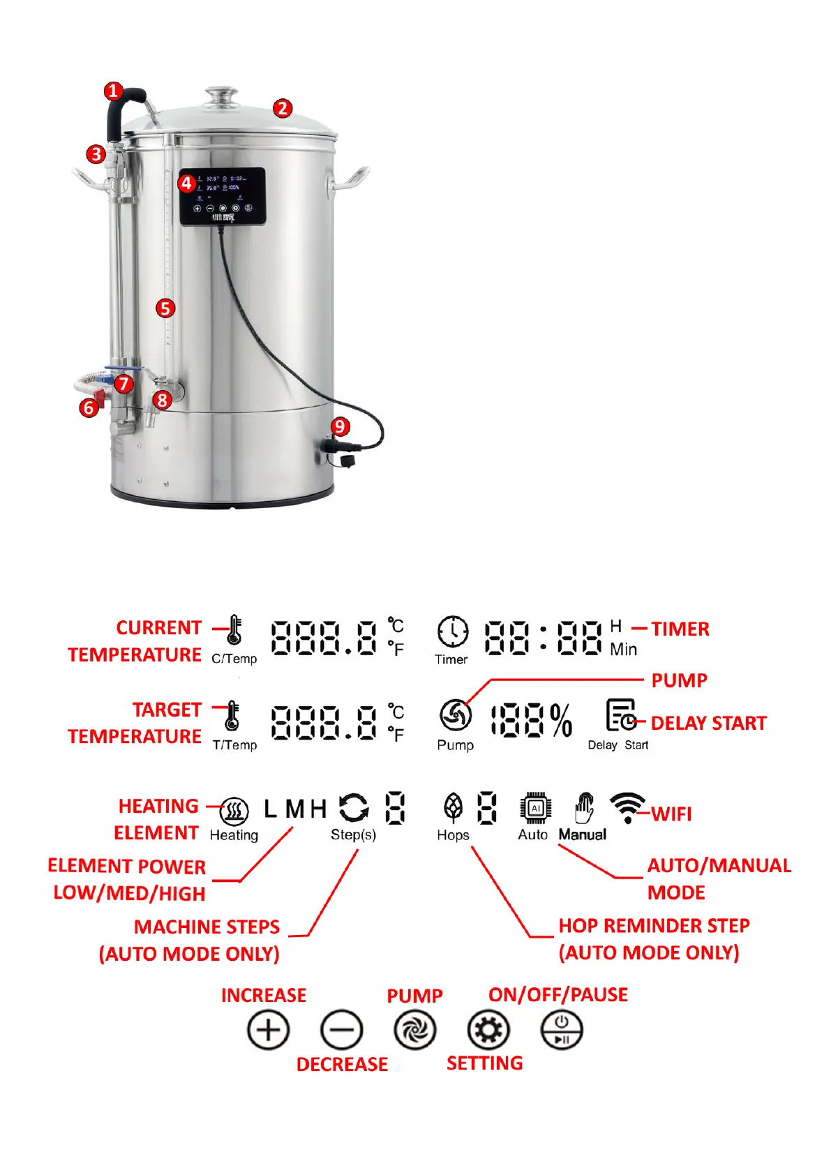 Below BrewDevil display showing all items (items visible both before & during brewing)
