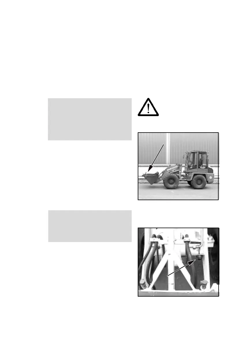 (1) Lower the bucket arm until the