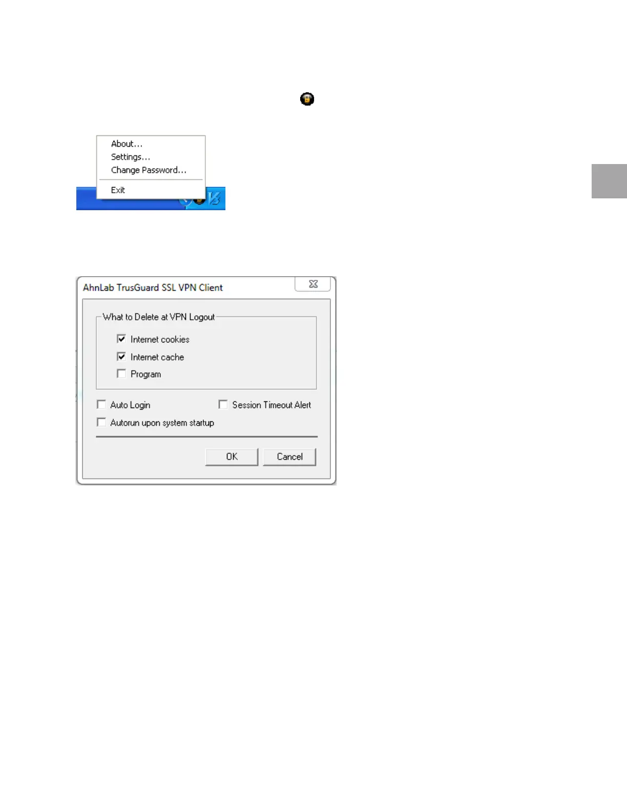 Right-click on theTrusGuard SSL VPN Client icon in the Windows notification area.