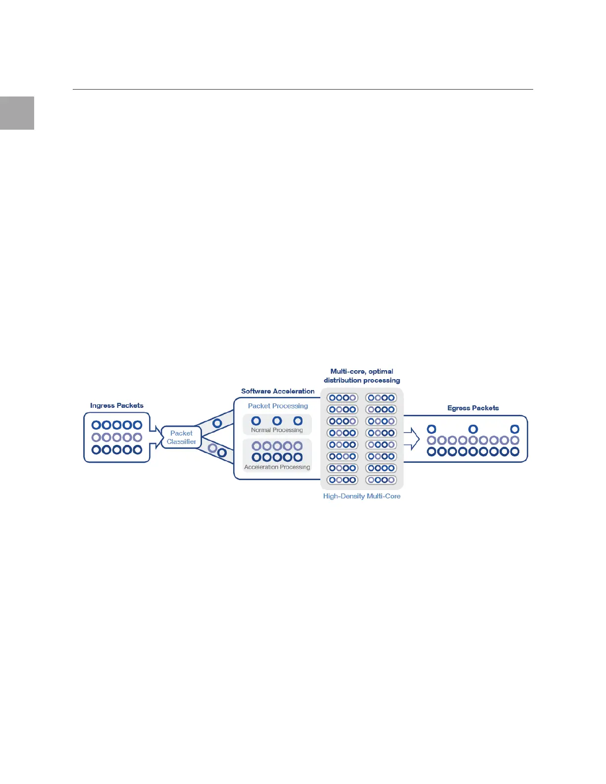 processing algorithm to separate packets for general or accelerated processing. Packets are then