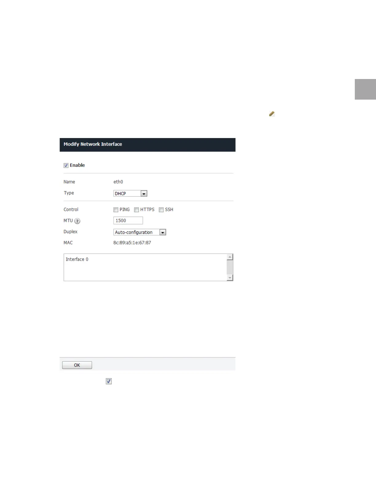 Set the network interface as below. Use the default settings for any fields that have been left out.