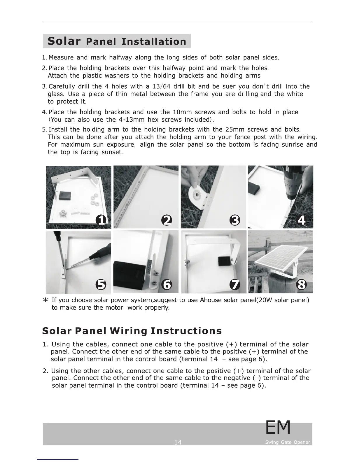 Ahouse EM - Optional System Installations; Solar Panel Installation; Solar Panel Wiring