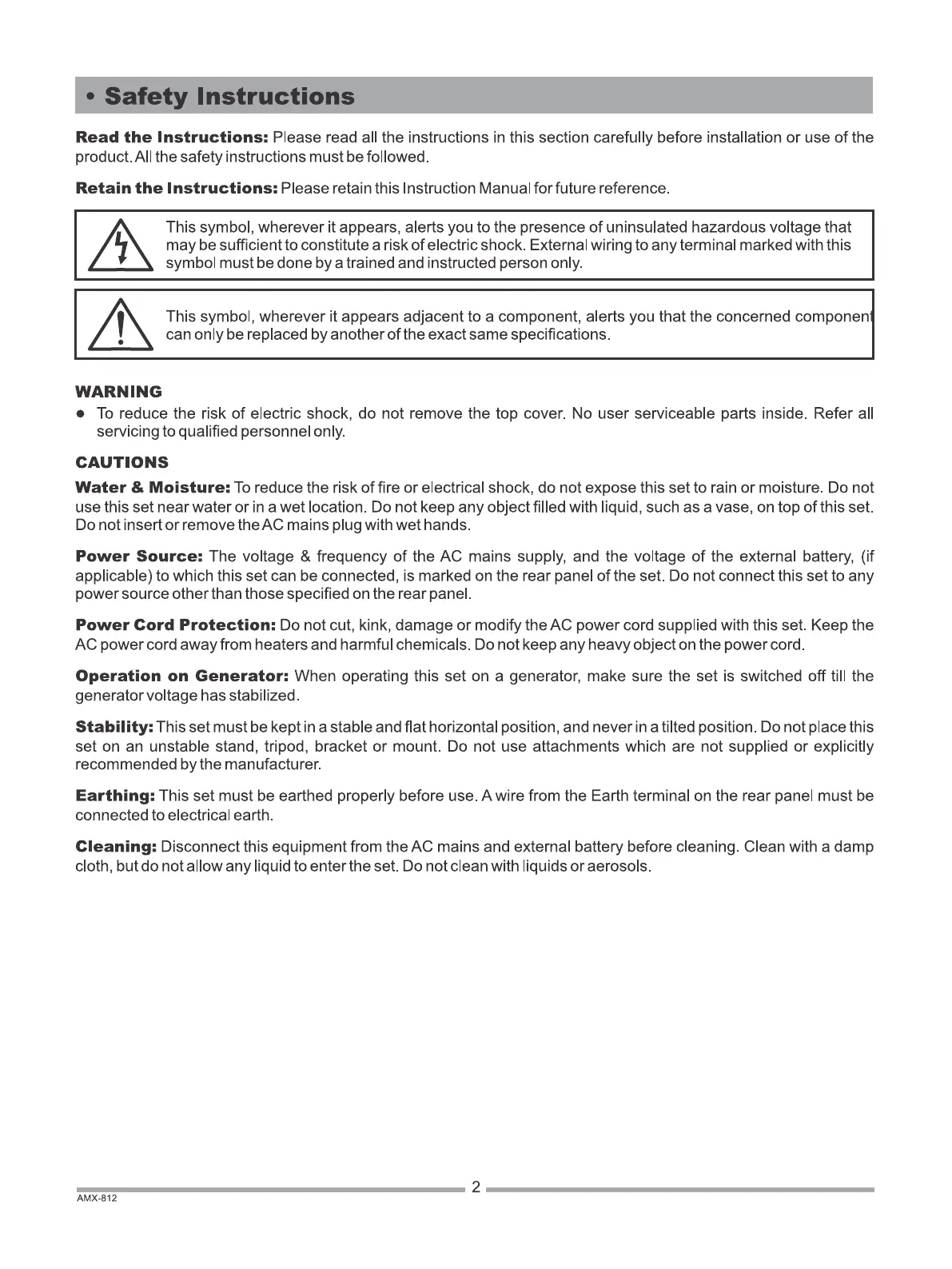 Ahuja AMX-812 - Safety Instructions; Warning