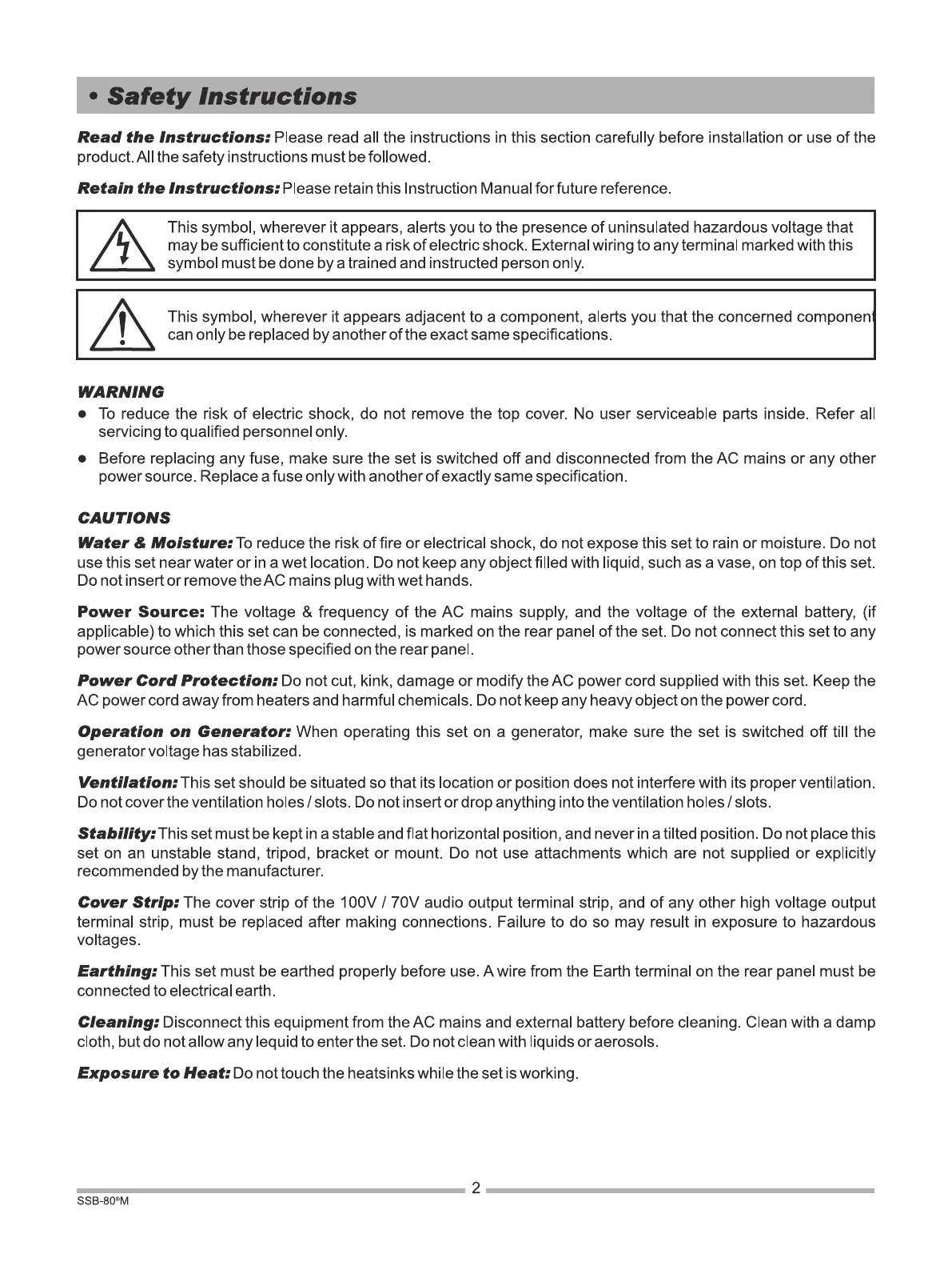 Ahuja SSB-80 M - Safety Instructions; Important Safety Warnings; Cautions and Precautions