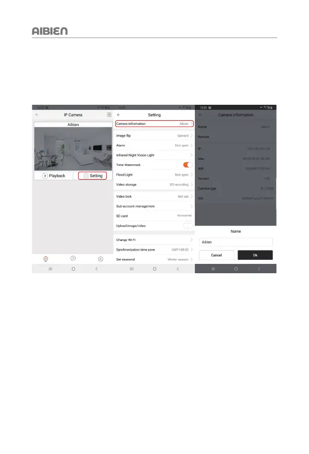 1. Click 'Setting' > 'Camera information' > 'Name'.