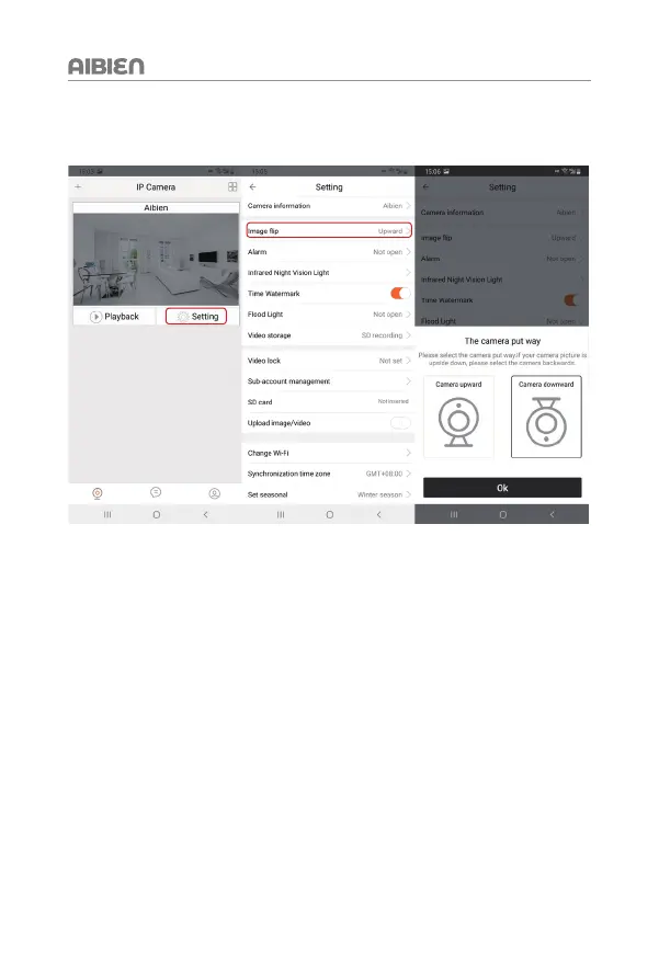 Step: Click the 'Setting' > ' Image flip' > Option the camera put way > Click 'OK' to save.