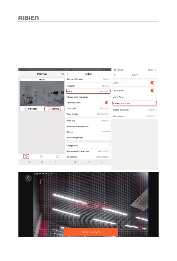 Steps: Go to 'Settings' > 'Alarm' > 'Camera alarm area' >Drag the red frame to adjust the