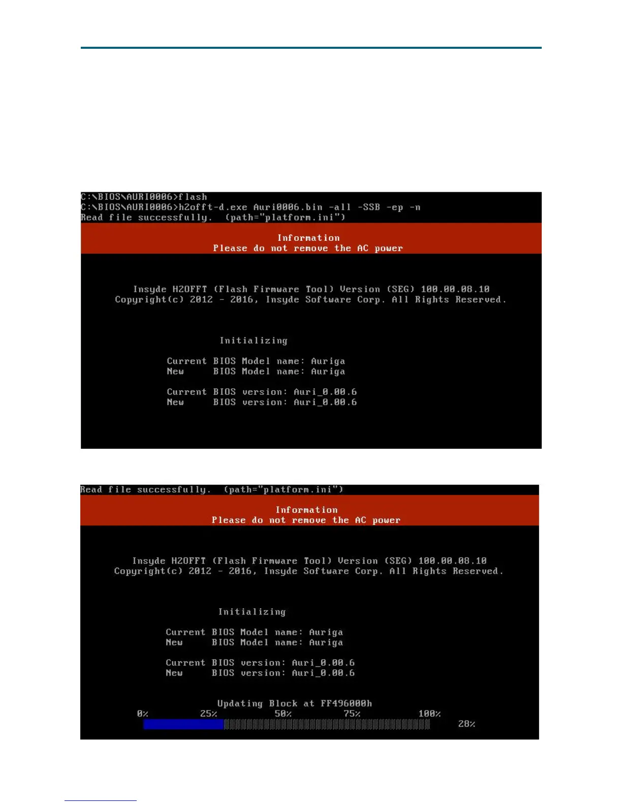 If you need to update Flash in the DOS environment, please use H2OFFT-D utility.