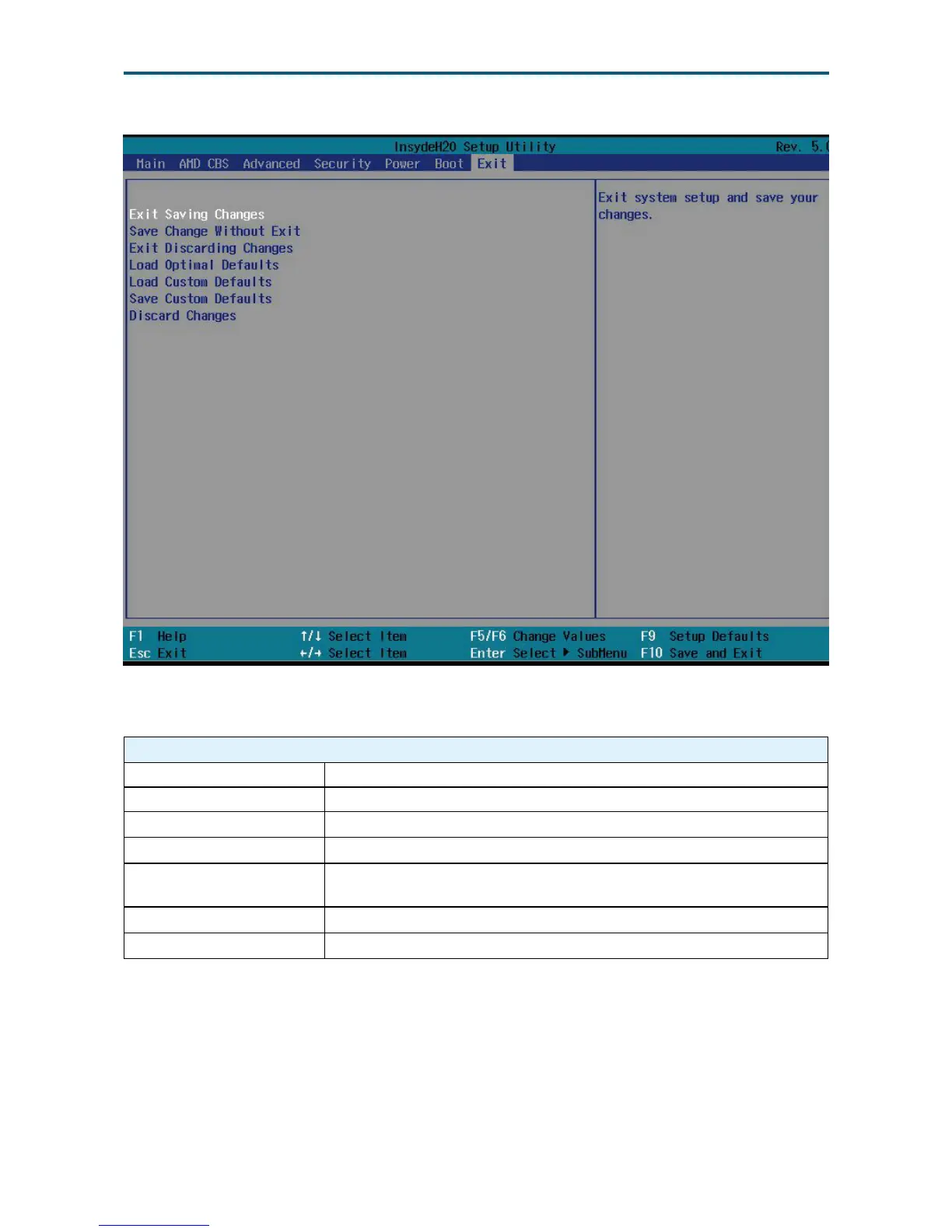 Exit Saving Changes Exit system setup and save your changes.
