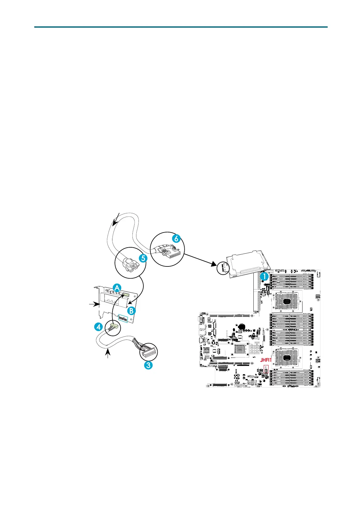 4. Connect the other end of the HFI cable to the connector (marked A) on the HFI card as
