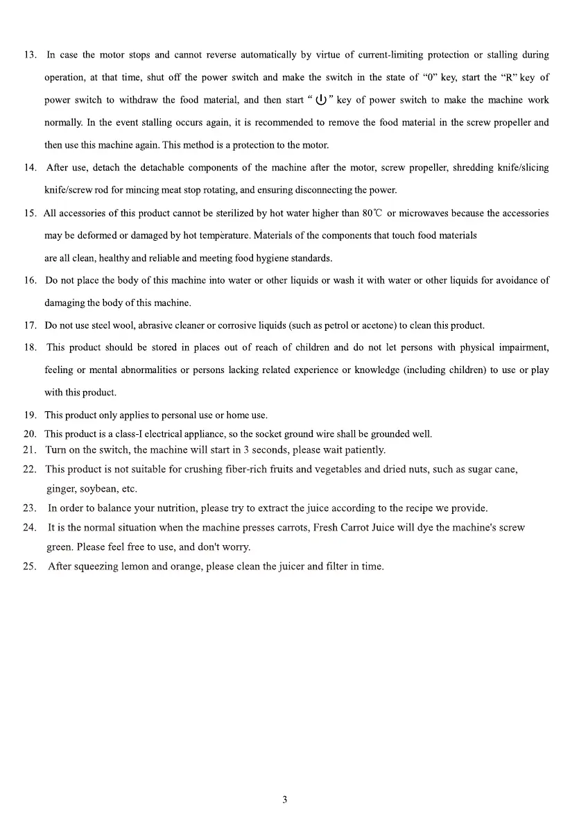 This product is not suitable for crushing fiber-rich fruits and vegetables and dried nuts, such as sugar cane,
