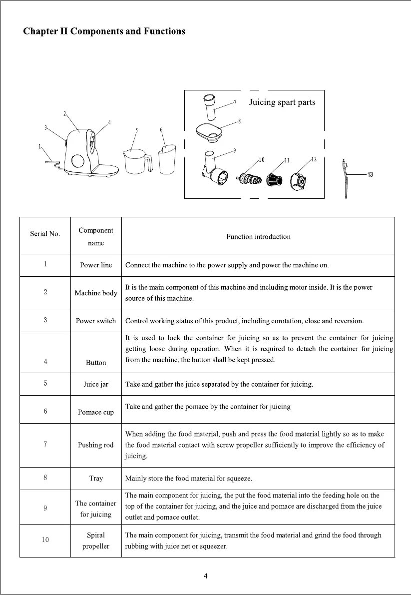 The main component for juicing, the put the food material into the feeding hole on the