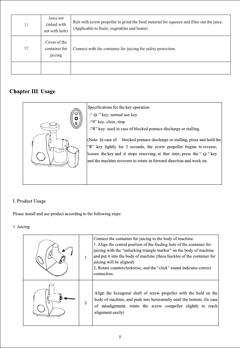 Rub with screw propeller to grind the food material for squeezeandfilter out thejuice.