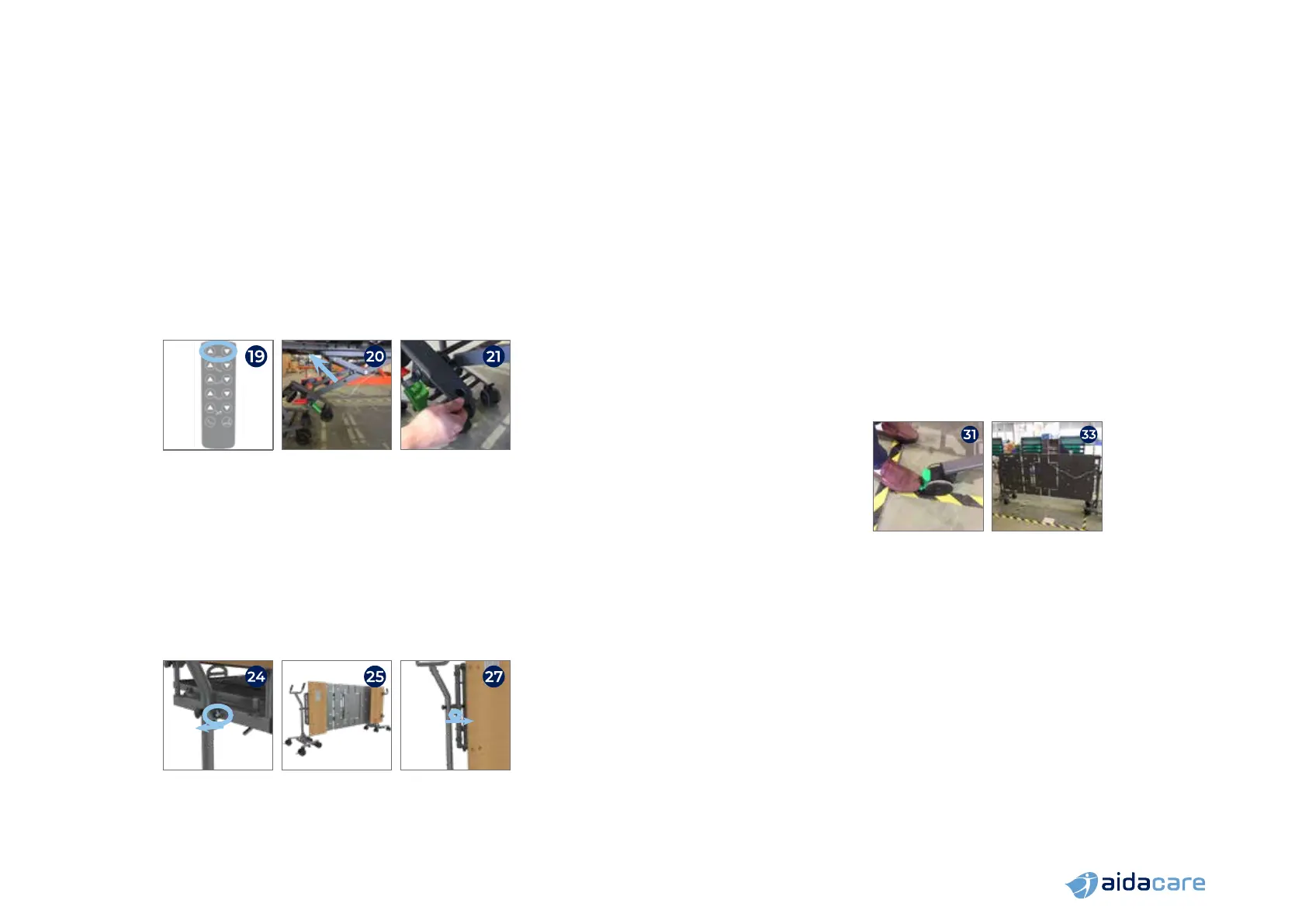 21. If the bed castors shift into a vertical position, stop the lift, adjust them