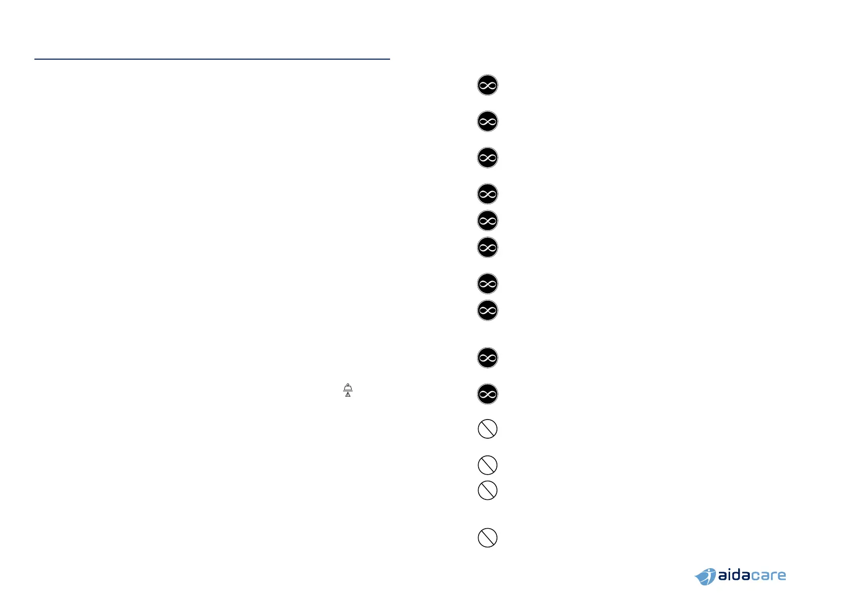 • The bed should only be used with approved accessories. Contact Aidacare